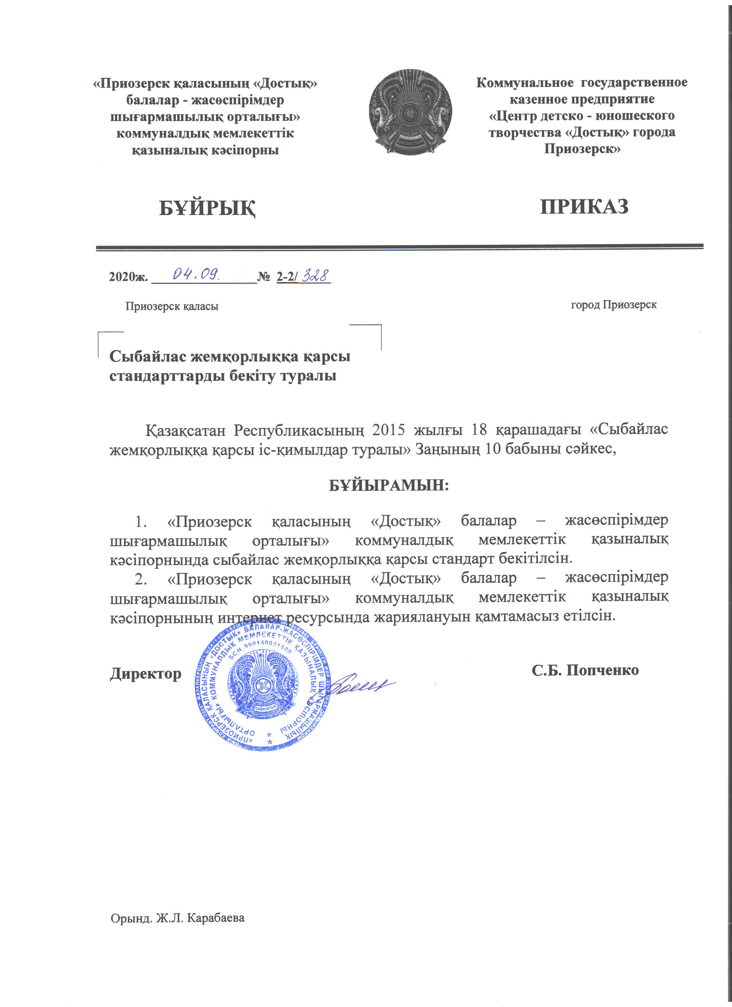 Қарағанды облысы білім басқармасының Приозерск қаласы білім бөлімінің "Достық" балалар-жасөспірімдер шығармашылық орталығы КМҚК