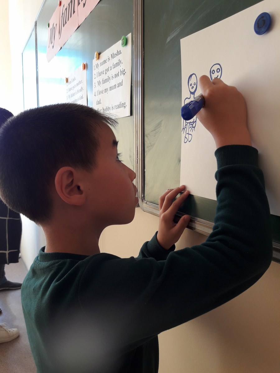 Балалар "отбасы мүшелері" тақырыбы бойынша лексиканы қайталады, ағылшын тілін қарым-қатынас құралы ретінде қолдана отырып, өз қабілеттерін дамытты және мәтіндегі ақпаратты толық түсінетін дәрежеде оқуды үйренді. Сабақ балаларға қызықты және бай болды.