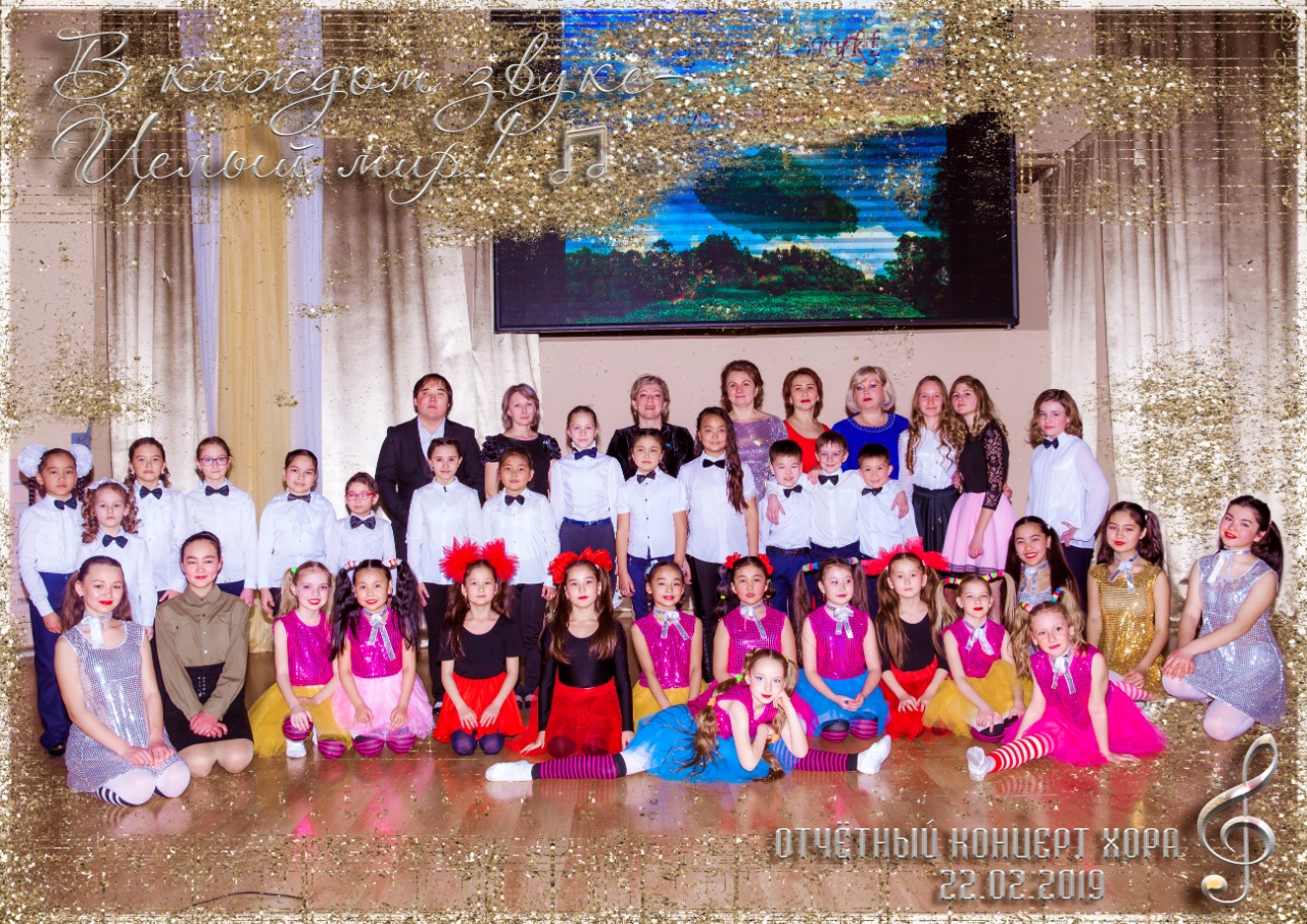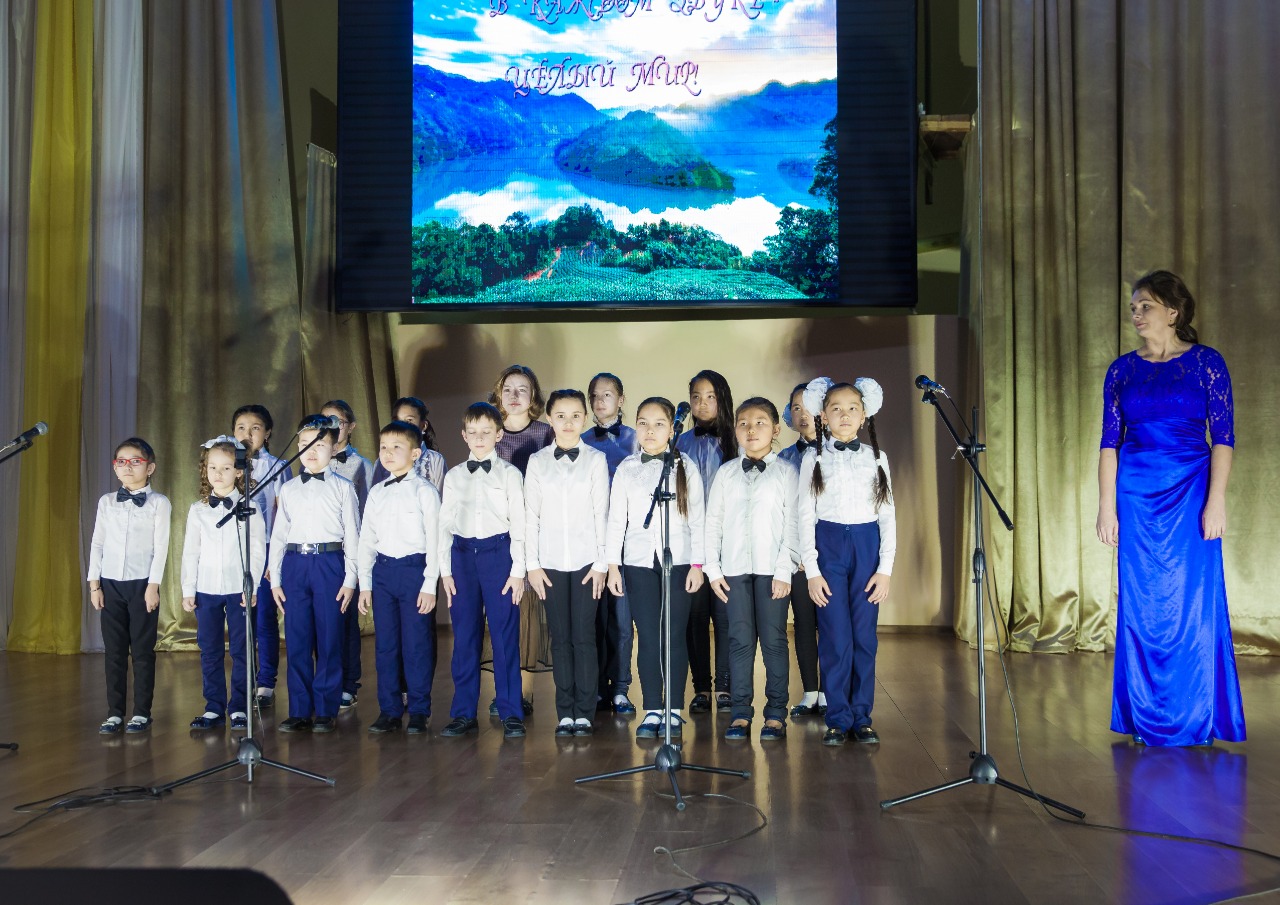 23.02.19 ж. ""Достық" БЖШО" КМҚК музыкалық бөліміндегі балалар хорының "Әр дыбыста-тұтас әлем" атты есептік концерті өтті. Жетекшісі және дирижері - Мишугина Т., концертмейстері - Волкова Е.