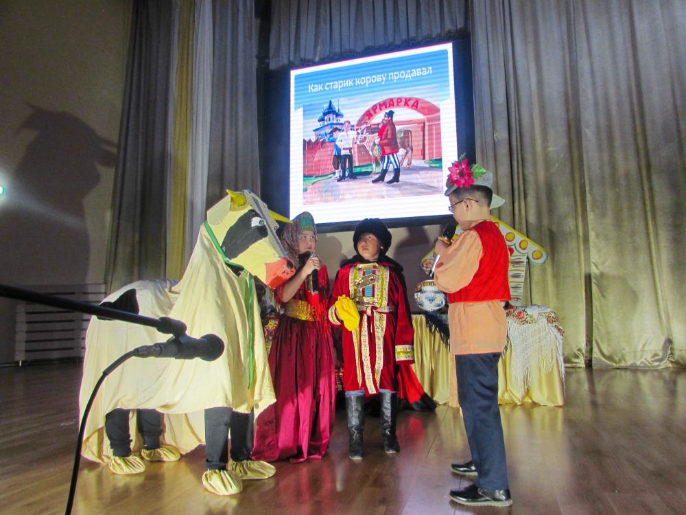 - «Учим русский язык» үйірмесі, жетекшісі Динисламова Г.Н. – «Как старик корову продавал» атты  ертегісінің театралдық қойылымы;