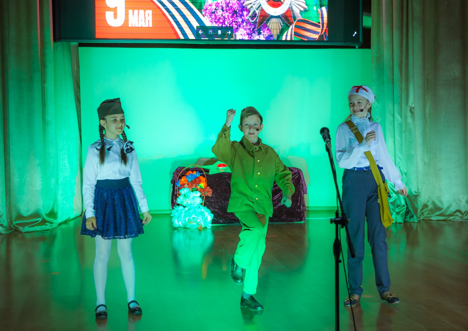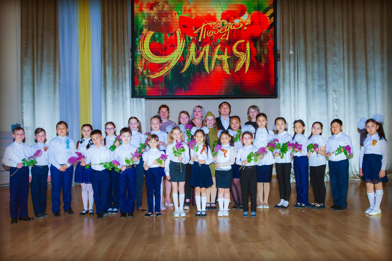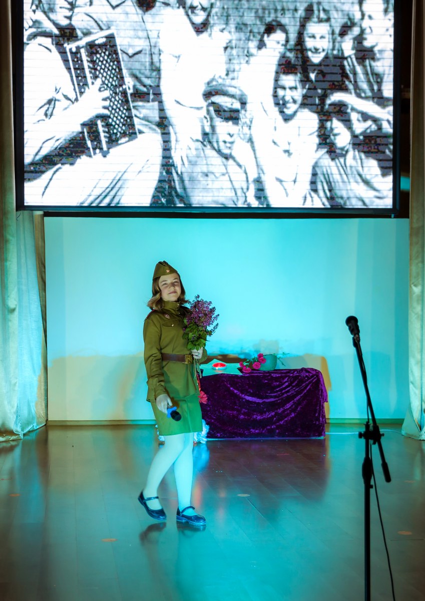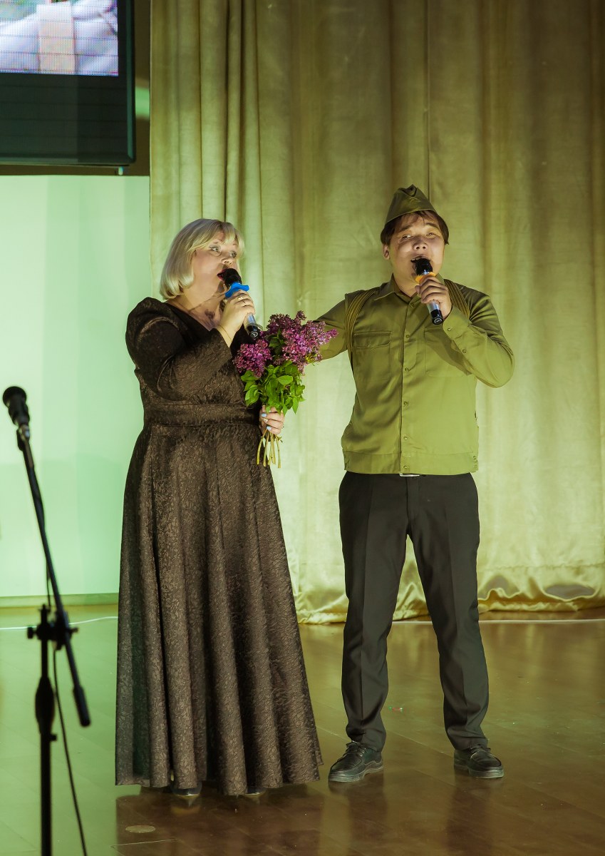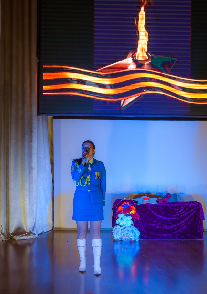 Бұл фашизмді жеңудің есте қаларлық күні халықты ешқашан ұмытпайды. Бұл қорқынышты соғыс жылдарынан бері 74 жыл өтті. Бірақ біз әрқашан өз өмірінің бағасымен, бейбіт аспанды сыйлаған қаза тапқандарды есте сақтауымыз керек! Концерттің жүргізушілері мен ұйымдастырушылары Е.А. Литвинова және Г.К. Турдыбаева мерекелік концертте соғыс жылдарының рухы мен көңіл-күйін, жеңіске деген үмітін, фашизмді жеңуге мүмкіндік берген Одақтың барлық халықтарының бірлігін толық көлемде қайта жаңғыртты.