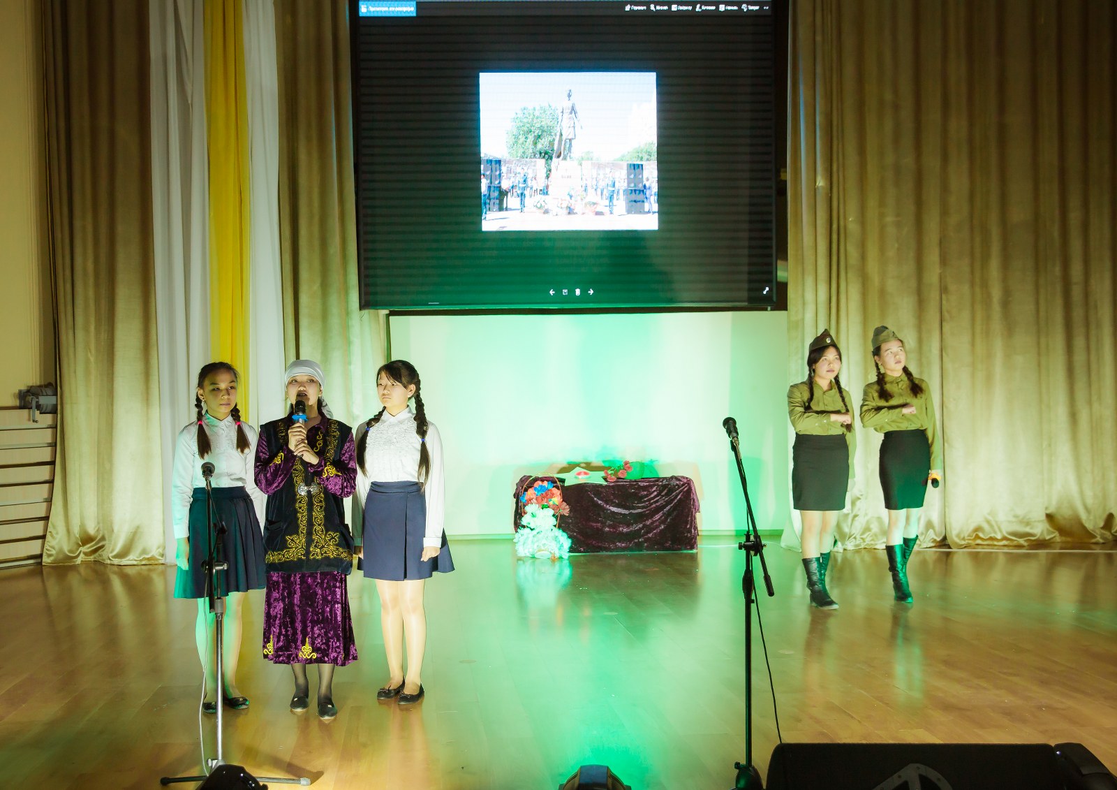 - "Помните люди…" қойылыммен, "Знай-ка" үйірмесінің тәрбиеленушілері, жетекшісі З.Т. Ильтнер;