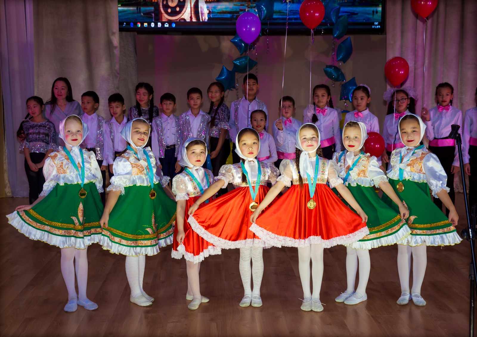 Концертке «Вдохновение», «Учим русский язык», «Happy english», «Домисол-ка» балалар хоры, «Қызықты математика», «Знай-ка» үйірмелерінің балалары қатысты.
