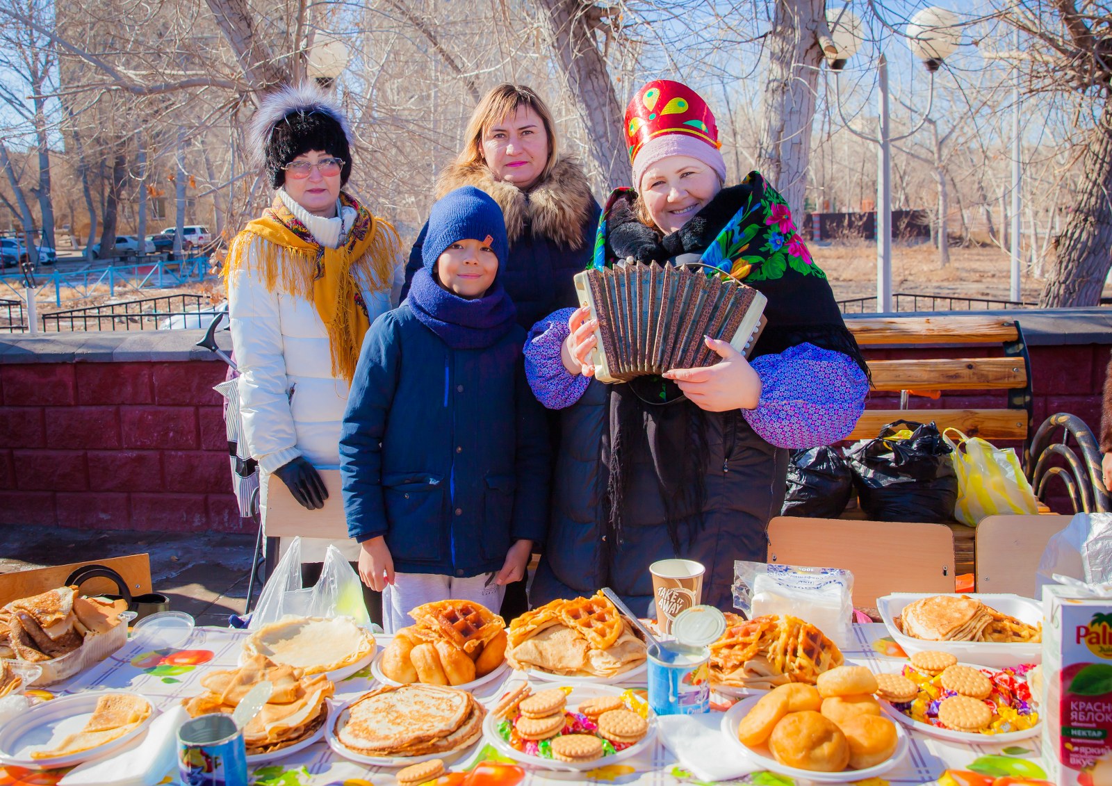 Мереке кезінде әр қонақ орыс пешінің құрылғысымен танысып, матрешка мен Масленицамен суретке түсті.